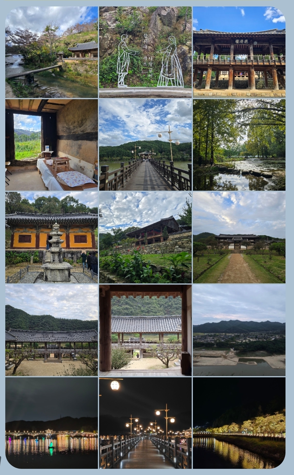 이번 답사에는 미스터션사인 촬영지로 유명한 만휴정과 묵계서원과 안동호를 가로지르는 긴 나무다리 월영교,